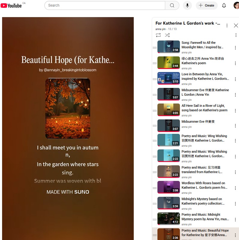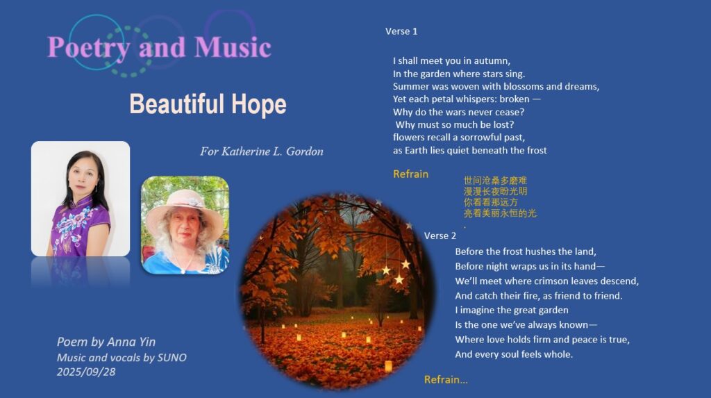 Special Pages (Poetry and Music) Songs inspired by Katherine L. Gordon’s poems Anna Yin’s Poetry and Music Project Poetry and Music samples (in Chinese and English)